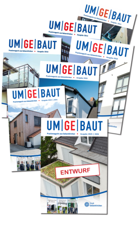 UM|GE|BAUT wird verteilt auf Veranstaltungen und Messen in der Stadt, und gezielt versandt an Hausbesitzer.